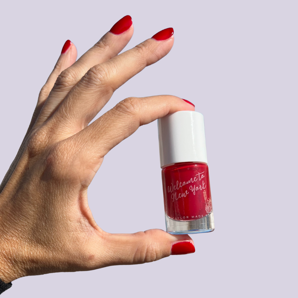 A classic, vibrant red with a glossy finish that makes a statement. The front bottle artwork features the iconic Statue of Liberty—the ultimate symbol of arrival and new beginnings. This shade is bold, confident, and unapologetically New York.