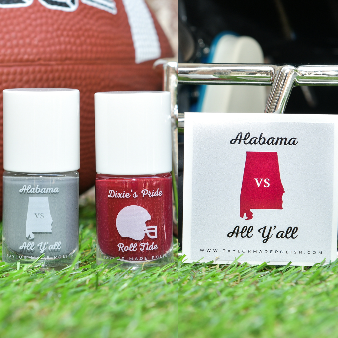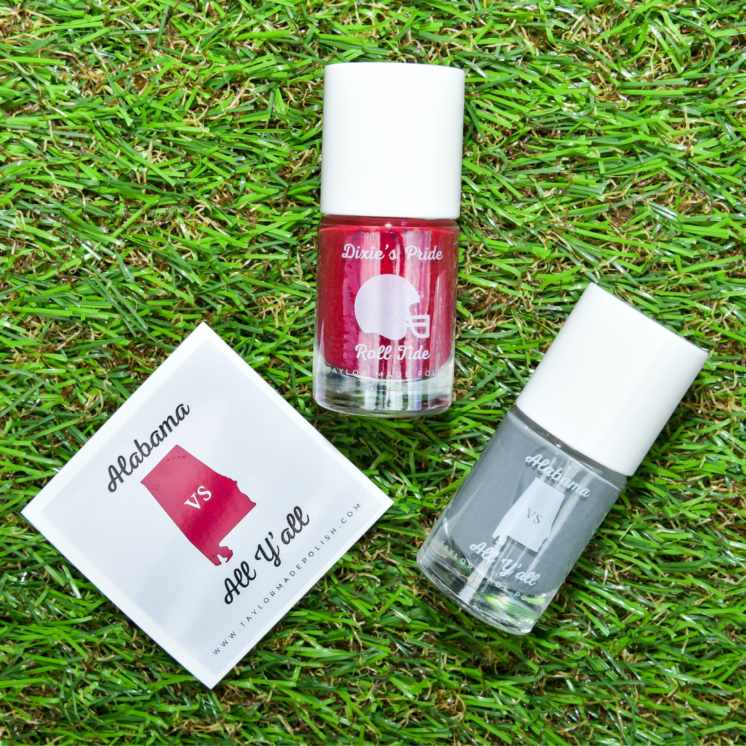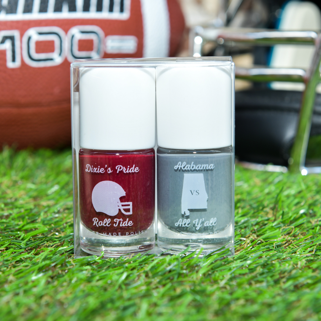 Designed to bring the spirit and excitement of college sports directly to your fingertips! Show your Crimson Tide pride with “Dixie’s Pride” (crimson) and “All Y’all” (gray). Glossy cream coat polish with a quick dry finish.