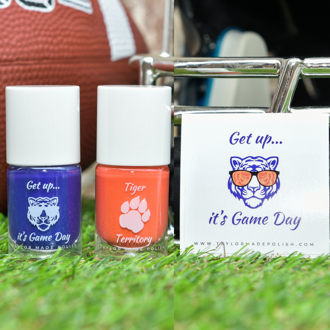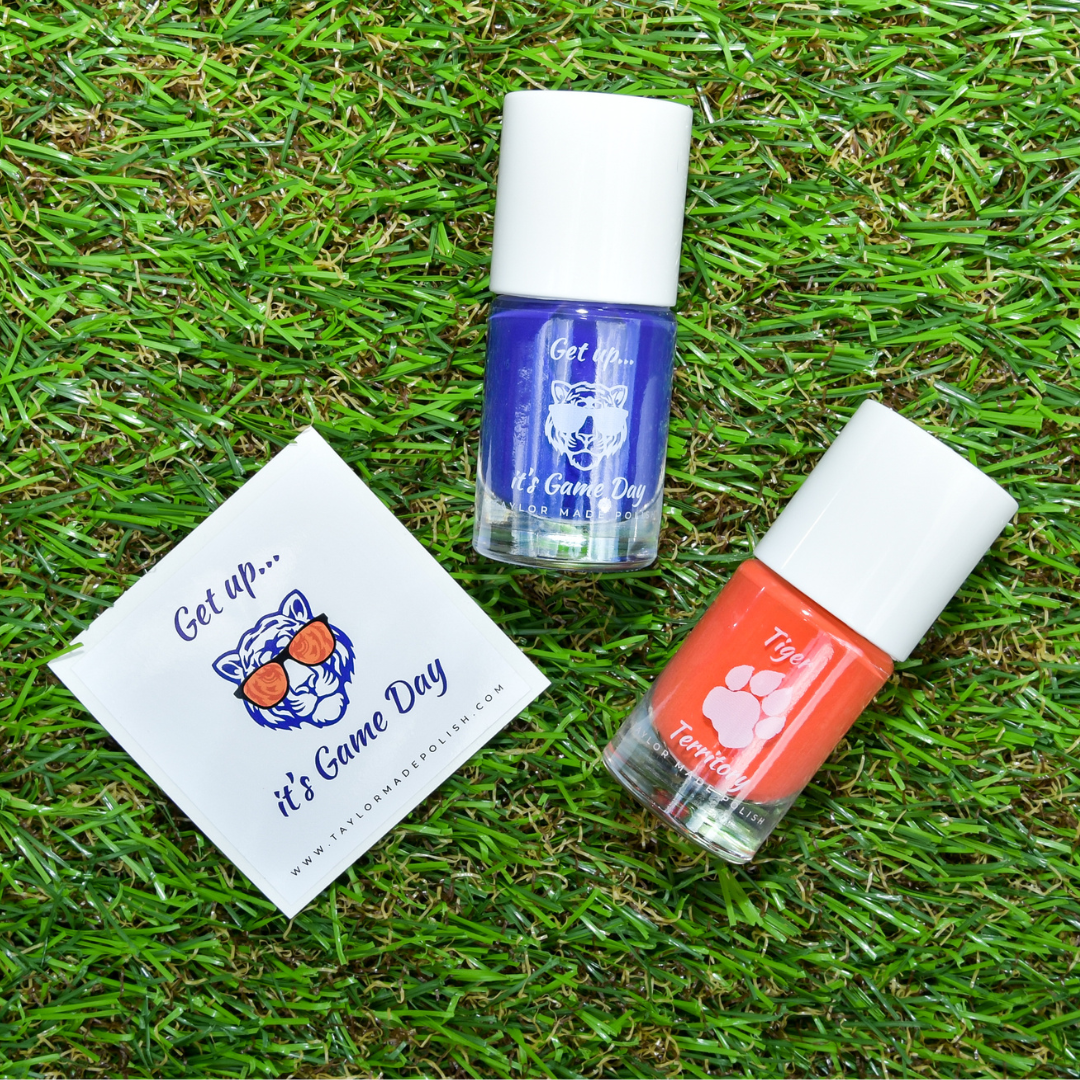 Designed to bring the spirit and excitement of college sports directly to your fingertips! Show your Tiger pride with “Get Up” (purple) and “Tiger Territory” (orange). Glossy cream coat polish with a quick dry finish.