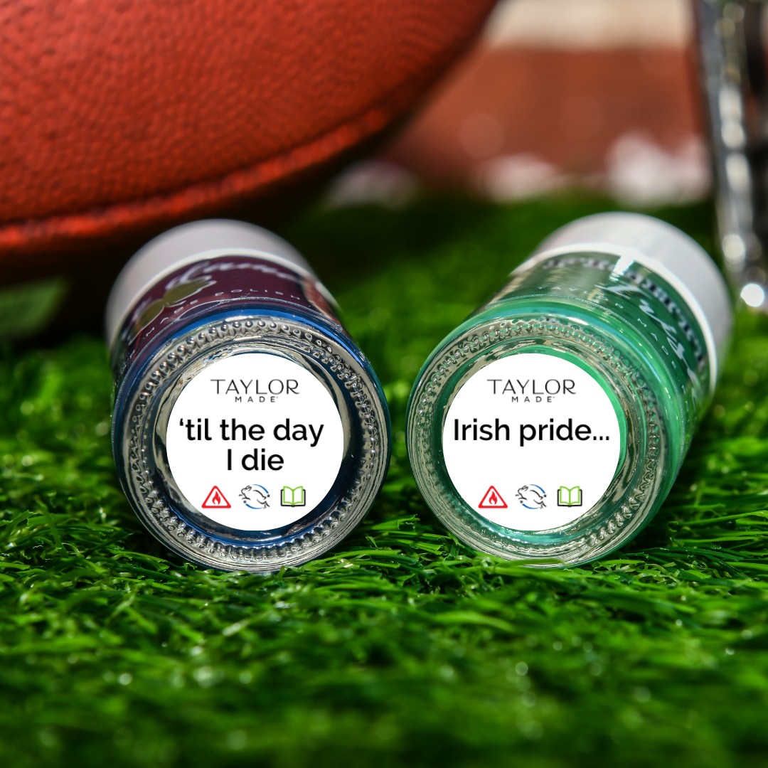 Designed to bring the spirit and excitement of college sports directly to your fingertips! Show your team spirit with “Irish pride...” (green) and “'til the day I die” (navy). Both shades are a glossy cream coat polish with a quick dry finish.