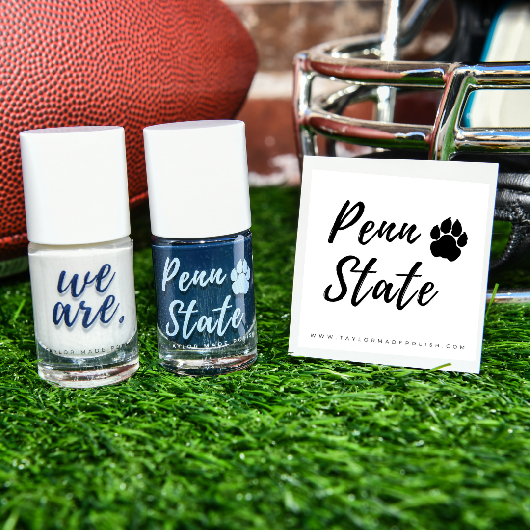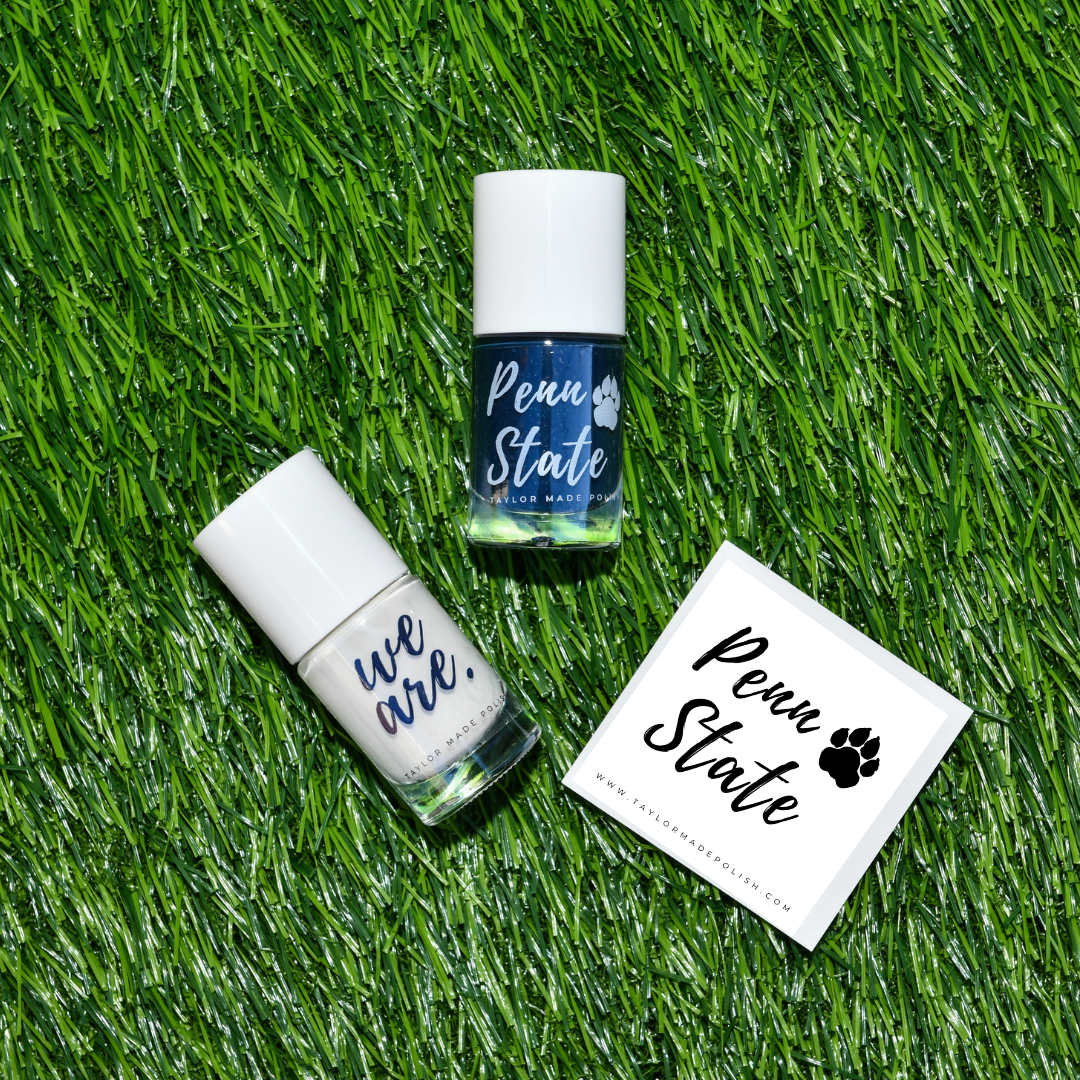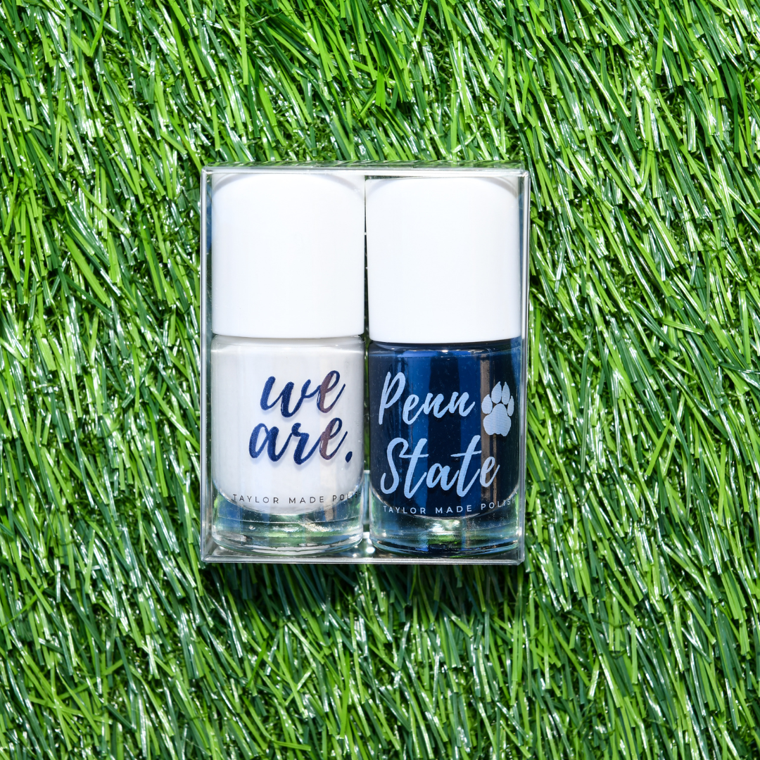 Designed to bring the spirit and excitement of college sports directly to your fingertips! Show your state pride with “Nittany Navy” and “We Are”. Both shades are a glossy cream coat polish with a quick dry finish.