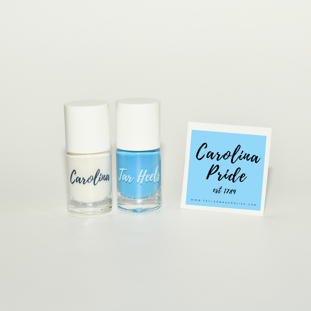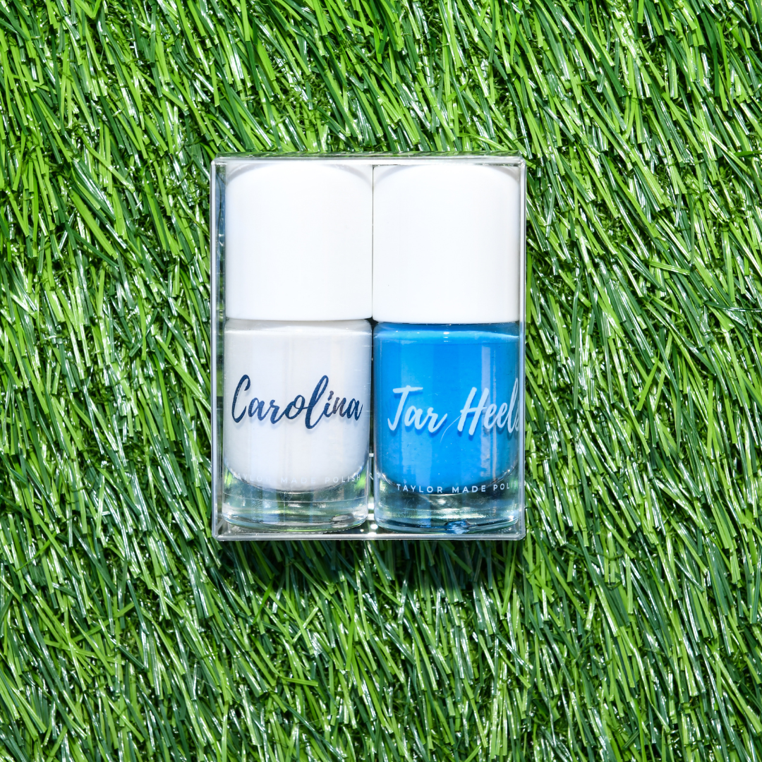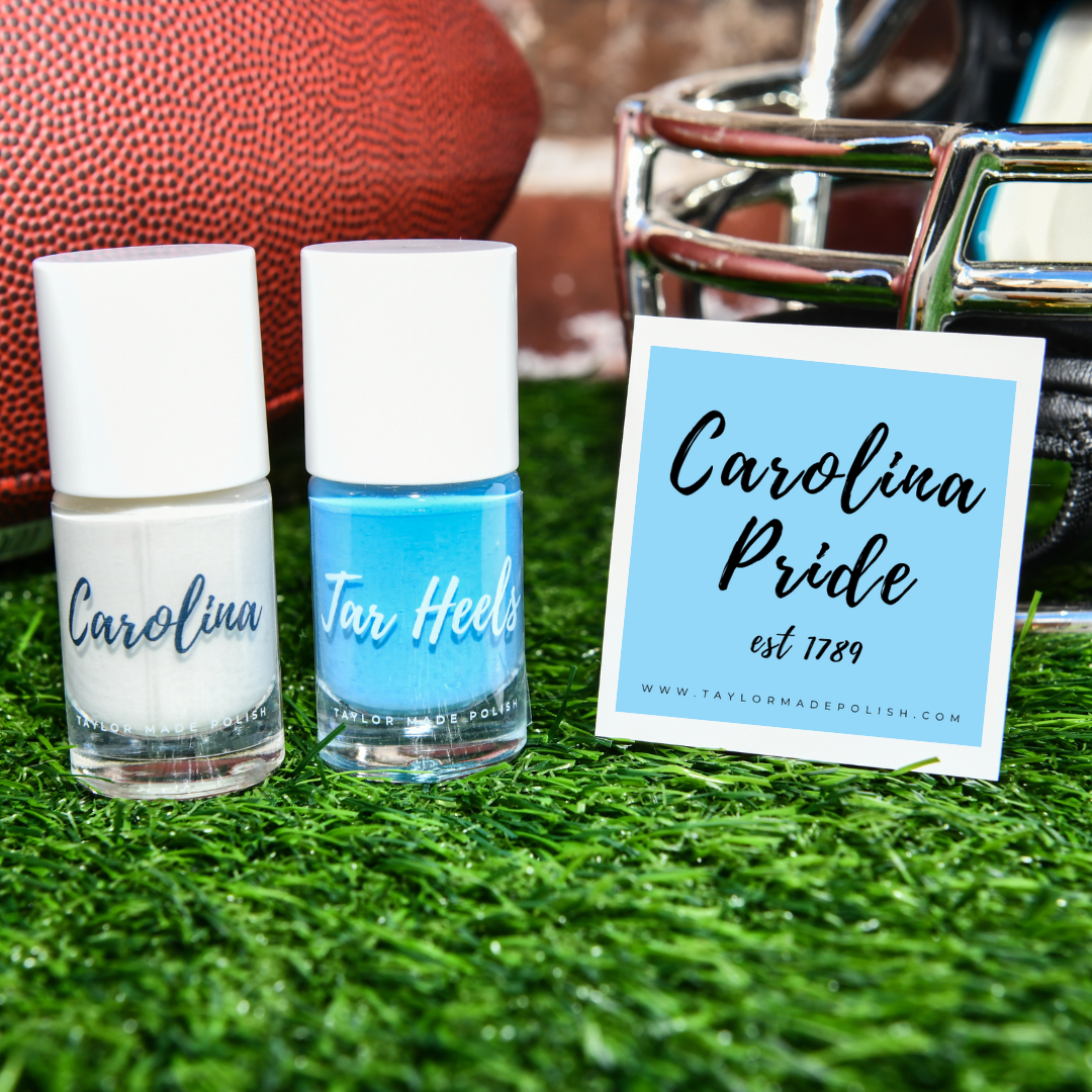 Designed to bring the spirit and excitement of college sports directly to your fingertips! If the Tar Heels are your then you'll love our creative nail colors “Carolina Pride” (white) and “Est, 1789” (light blue). Both shades are a glossy cream coat polish with a quick dry finish.