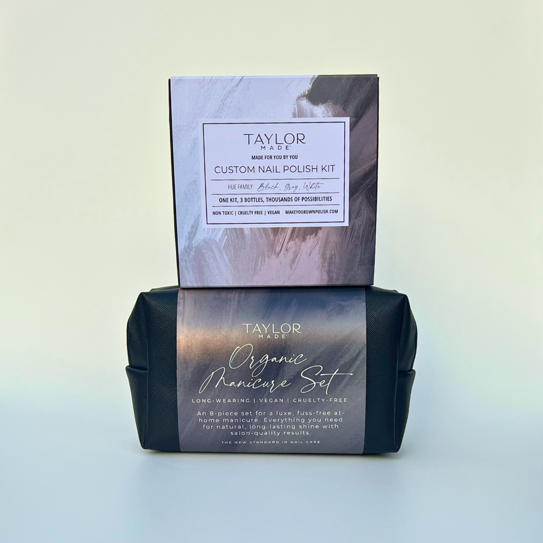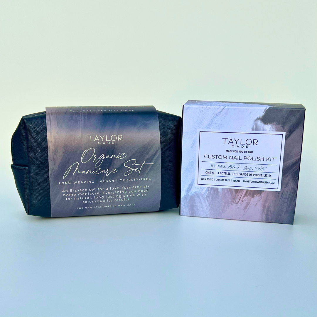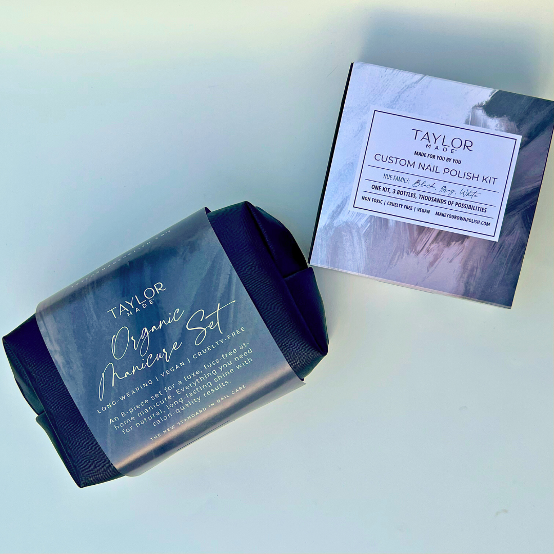 The perfect fusion of creativity and self-care! This thoughtfully curated set combines a Custom Nail Polish Kit and a luxurious Organic Manicure Set. Craft a personalized shade and elevate nail care to a whole new level. Available in multiple colorways – a timeless, personalized gift for every occasion. Give the gift of creativity, elegance, and conscious beauty with Taylor Made Polish.