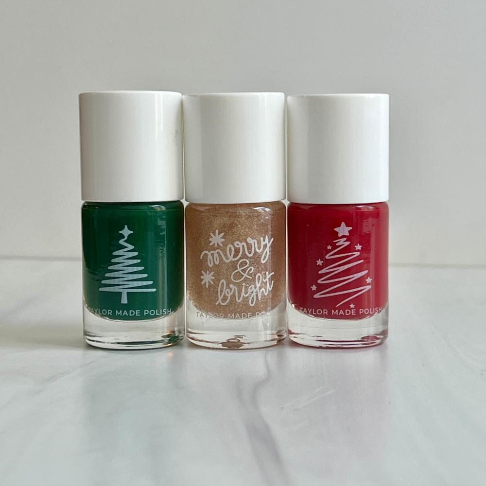 Celebrate the season with the Taylor Made Nutcracker 3-Pack Nail Polish Gift Set! Perfect for stocking stuffers, gift exchanges, besties, teachers, and everyone who loves to celebrate the season in style. These 3 beautiful shades (Classic Green, Festive Red and Glitter Gold) are stylish, chic and festive. Each set includes a matching gift tag for a complete, no-wrapping-needed gift.
