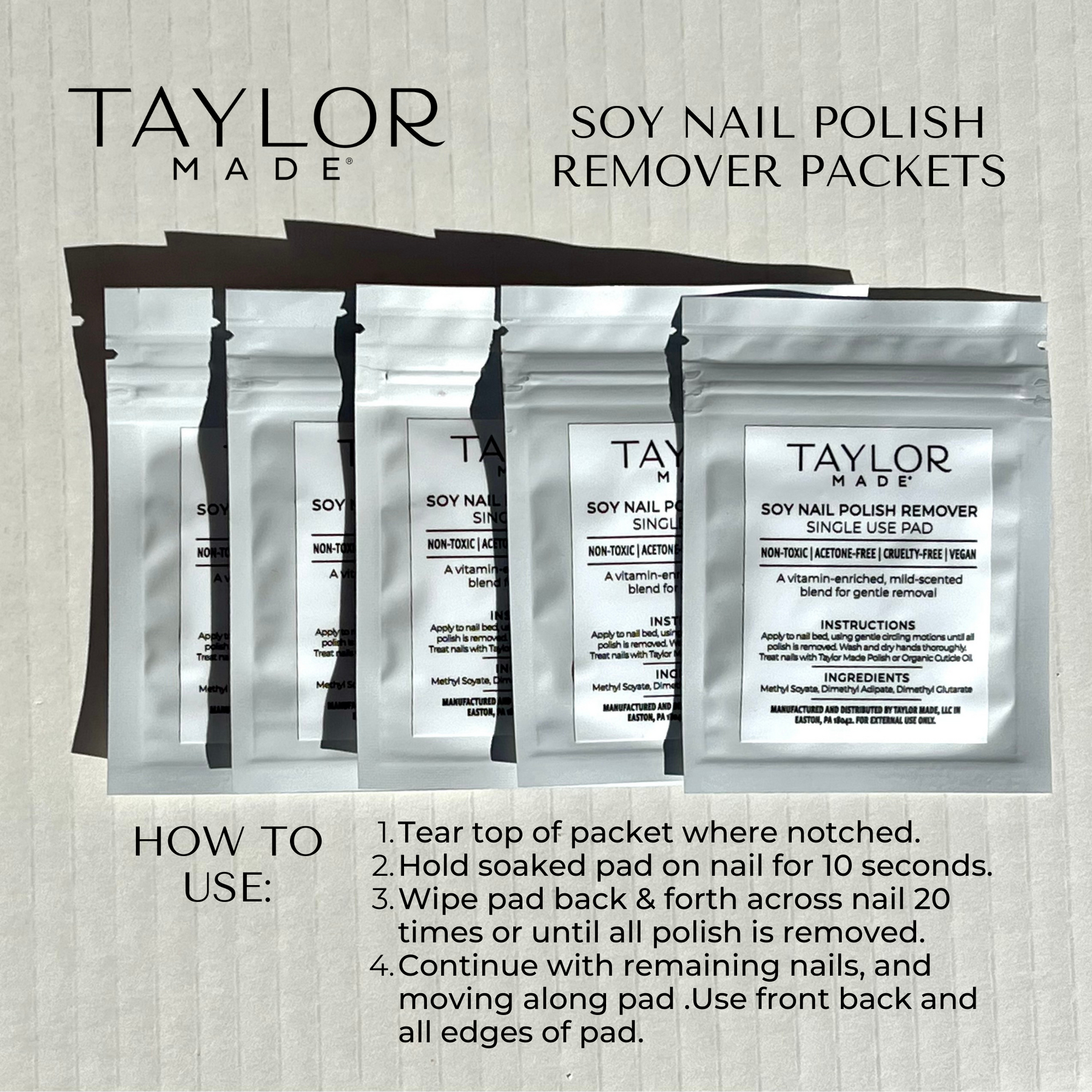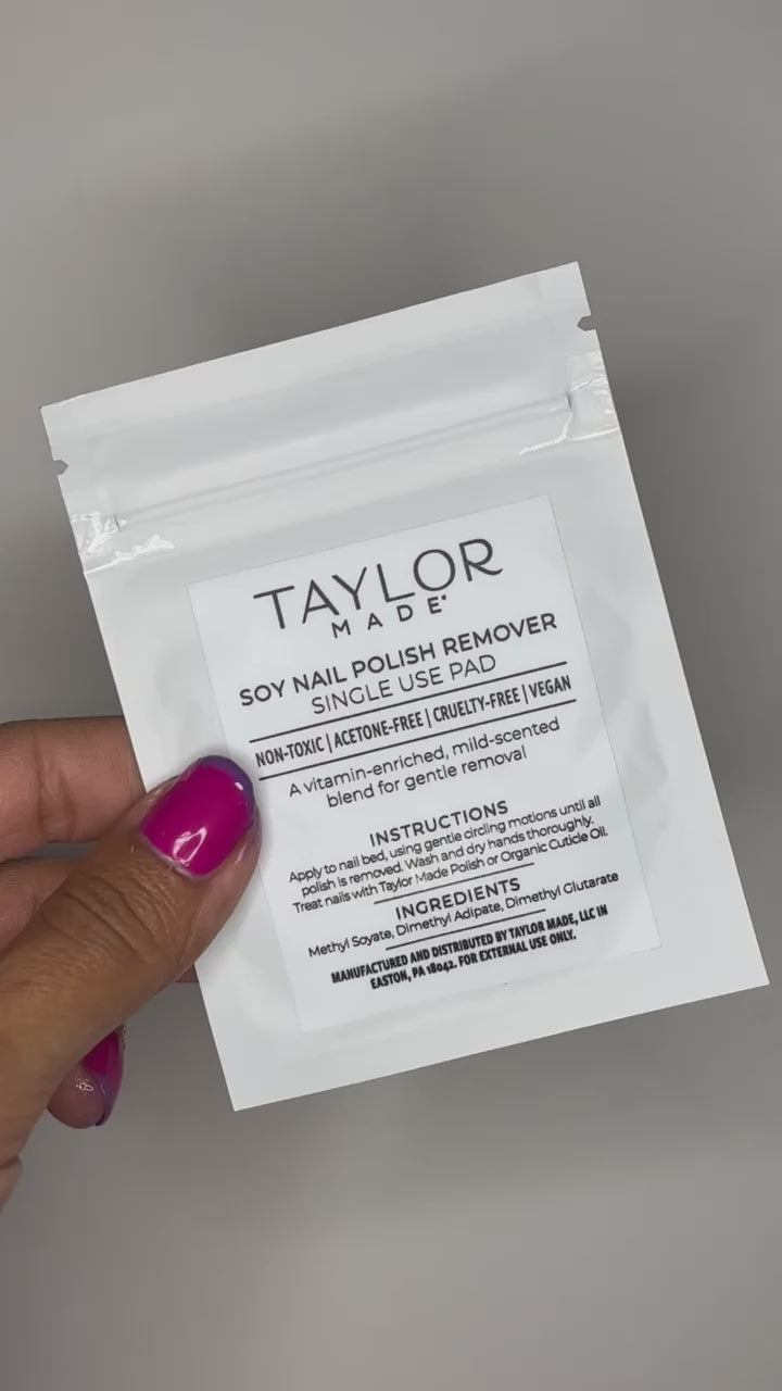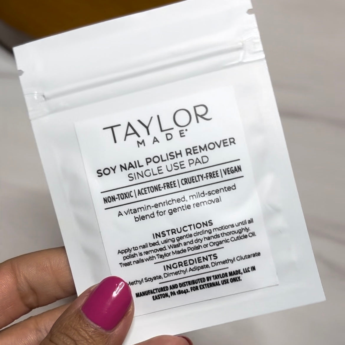 Single-use Soy Polish Remover with our travel wipes in resealable pouch.  Set of 5 wipes.
