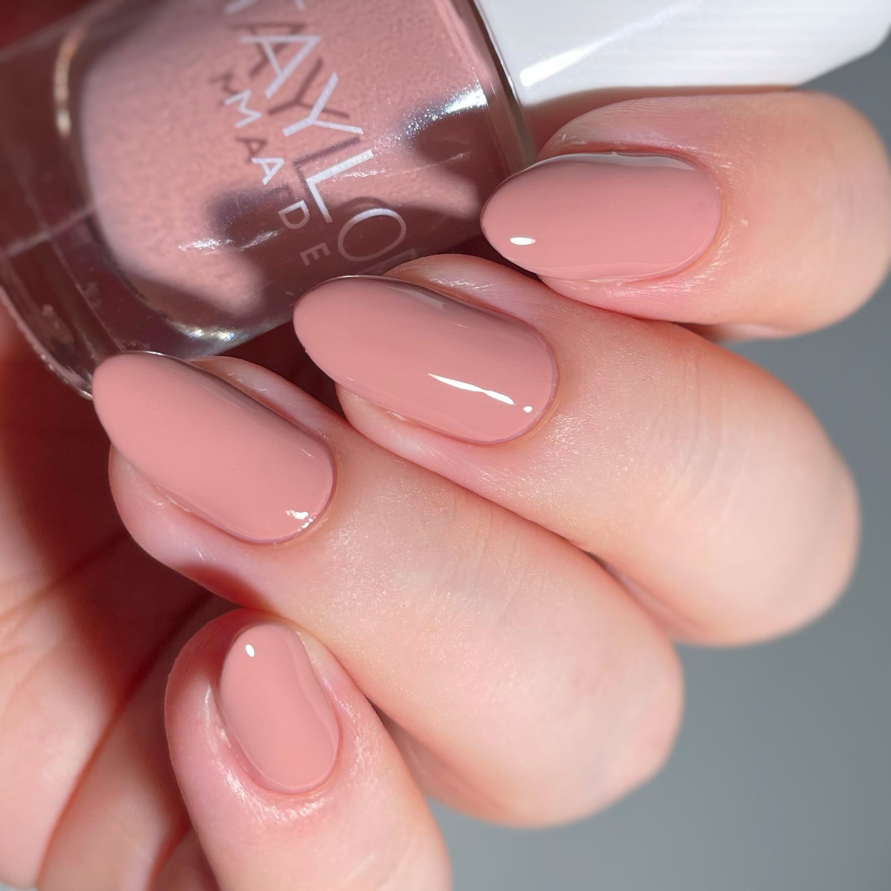 Nude Pink one-coat coverage with a creamy gloss finish. The color is neutral with a slight pink undertone.