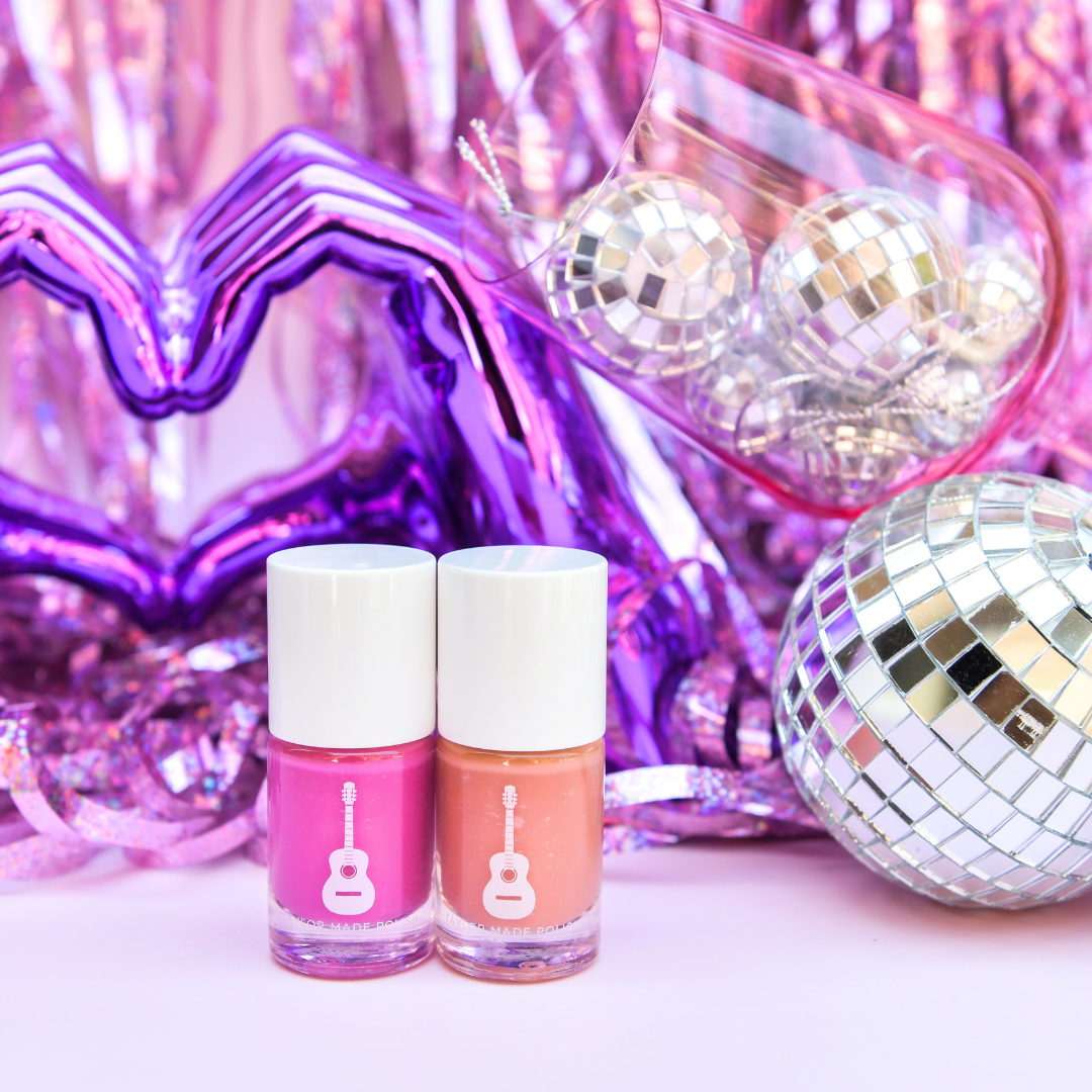 Celebrate YOUR Swiftie Style!  2 Pack full-size nail polish. Part of a 12 color "era" collection, this pack was inspired by the Fearless album. Neutral shades that look great on everyone.  Both colors are long-wearing with a gloss finish.  Fittingly named "We were both young" (medium bright pink) and "You belong with me"(peach).  You'll feel fearless wearing these gorgeous colors 😉