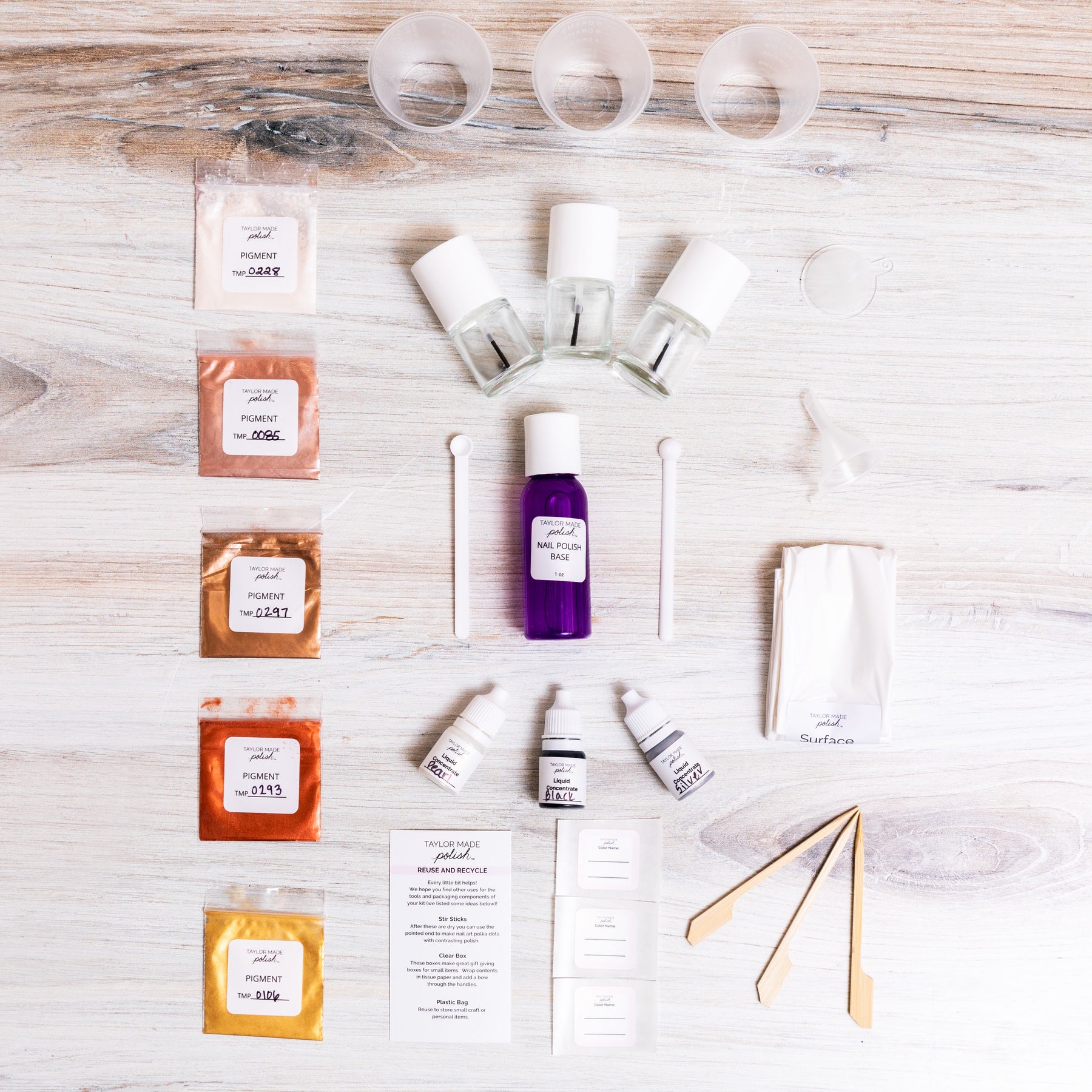 Each kit contains everything you need to Design, Mix, Bottle and Name 3 different bottles of nail polish.